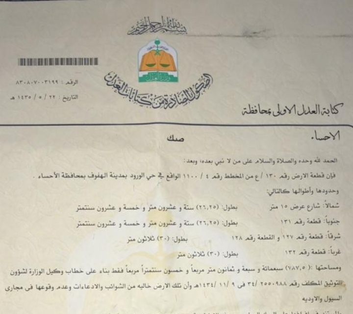 مخطط 1100 /4 قطعة رقم 130 ع المساحة 787 متر مربع شارع عرض 15 متر السعر سوم 170 الف
