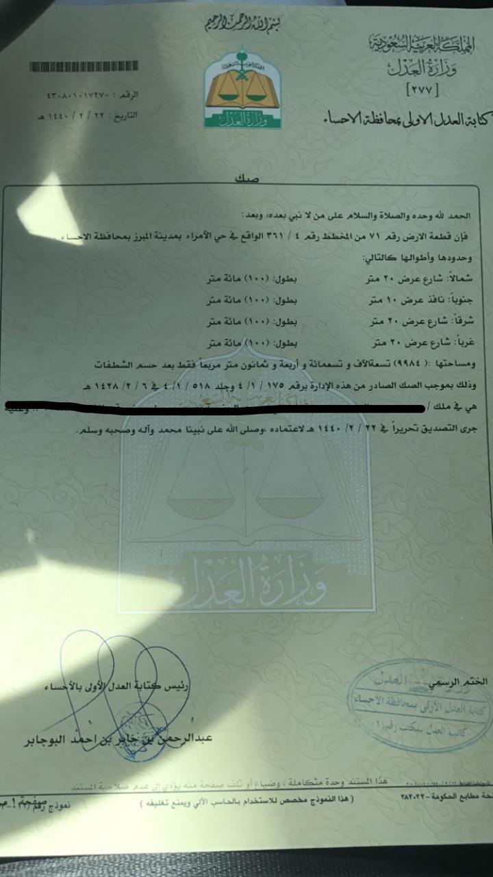 ارض حي الامراء بالمبرز رقم القطعه71 من مخطط 361/4 على اربع شوارع المساحة 9984 شمالا 20 جنوبا10 شرقا20 غربا20 السعر حد 5مليون و 500 الف ريال
